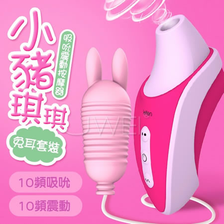 Leten.小豬琪琪 10x10段變頻震動吸插合體口愛按摩器-兔耳套裝