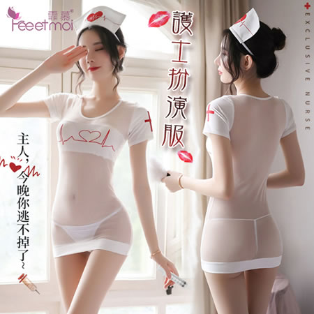 護士角色扮演服!心電圖意象設計四件式套裝﹝白﹞