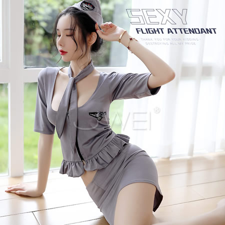 空運愛情.性感包臀短裙分體式空姐套裝五件組